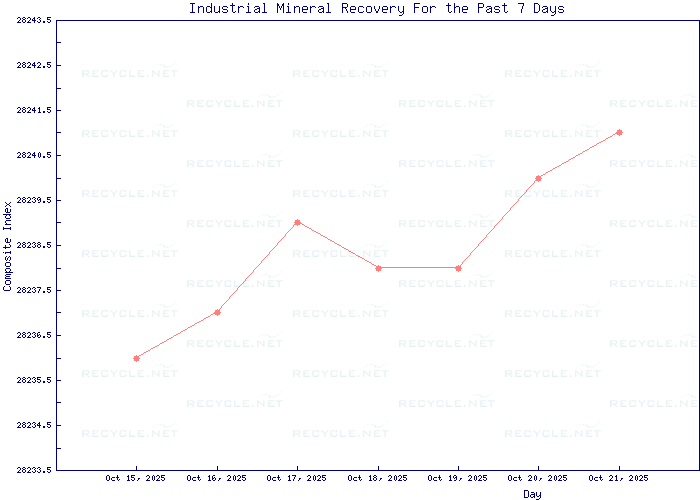 The Industrial Mineral Recovery Composite Index tracks the changing market prices if recovered minerals . The Index consists of a weighted basket of specific benchmark grades of recovered minerals and scrap industrial materials . The Index includes snapshots of 5 viewpoints of market trends : the past 7 days, past 30 days, past 90 days, past 1 year and past 2 years.