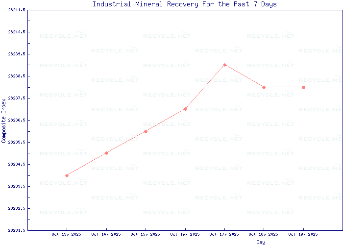 The Industrial Mineral Recovery Composite Index tracks the changing market prices if recovered minerals . The Index consists of a weighted basket of specific benchmark grades of recovered minerals and scrap industrial materials . The Index includes snapshots of 5 viewpoints of market trends : the past 7 days, past 30 days, past 90 days, past 1 year and past 2 years.
